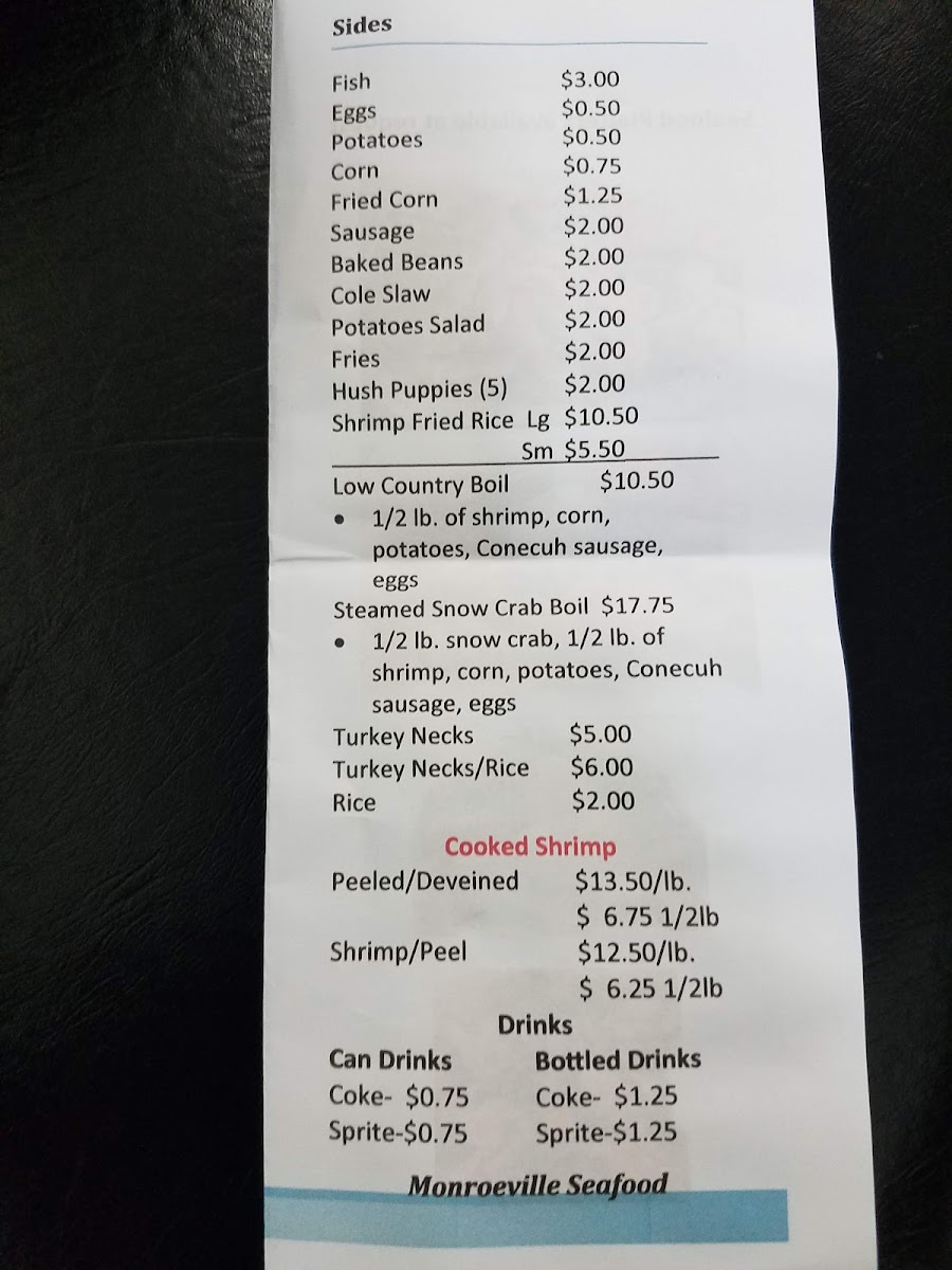 If you’re in the mood for fresh, flavorful seafood that hits all the right notes, the Monroeville Seafood Menu is definitely worth a look. From crispy fried shrimp and golden catfish to buttery crab legs, each dish feels like a little celebration of the Gulf Coast right on your plate. The menu balances classic comfort options with a few surprises, like zesty seafood pastas and perfectly seasoned fish sandwiches, giving you plenty of ways to mix and match flavors. Appetizers set the stage nicely too-think crunchy calamari, savory hush puppies, and creamy seafood dips that make it hard to wait for your main course. Drinks and sides are just as thoughtfully chosen, so you can pair your meal with a crisp cold soda or a rich, tangy coleslaw that complements the seafood without stealing the spotlight. Whether you’re coming for a quick bite or planning a full feast with friends and family, everything on this menu invites you to dig in, savor each bite, and enjoy the casual, laid-back vibe that makes seafood so irresistible in Monroeville.